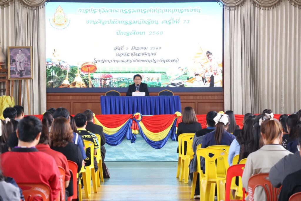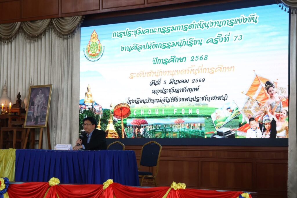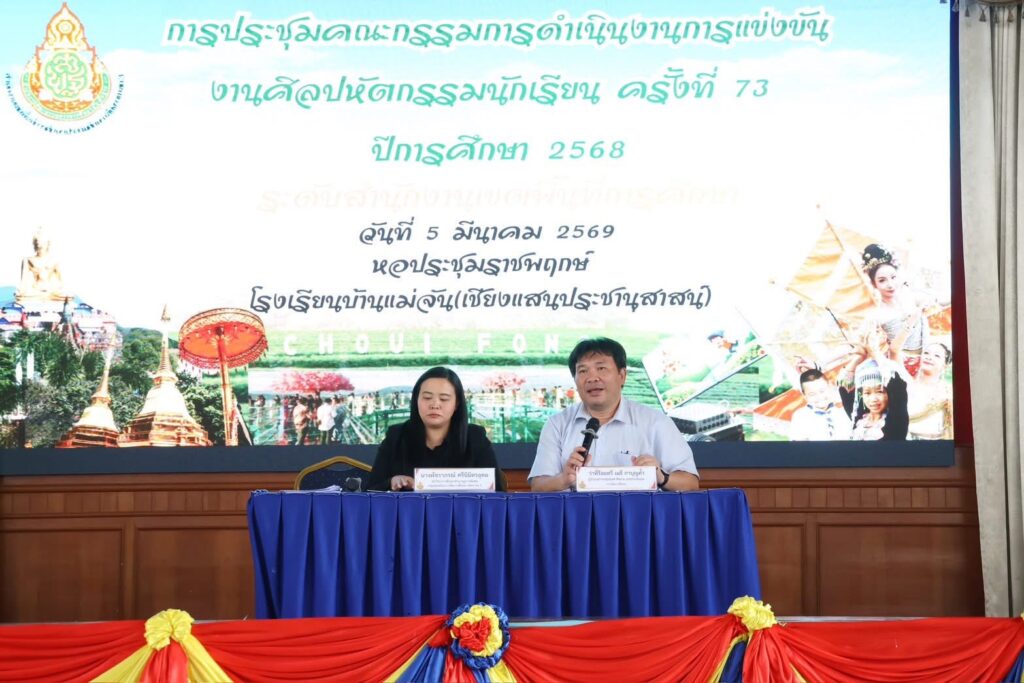 วันพฤหัสบดี ที่ 5 มีนาคม 2569 นางสาววรารัตน์ บุษรารักพงศ์ศิริ ผู้อำนวยการโรงเรียนบ้านม่วงคำ ได้เข้าร่วมการประชุมคณะกรรมการดำเนินงานการแข่งขันงานศิลปหัตถกรรมนักเรียน ครั้งที่ 73 ปีการศึกษา 2568 ระดับสำนักงานเขตพื้นที่การศึกษา ณ หอประชุมราชพฤกษ์ โรงเรียนบ้านแม่จัน (เชียงแสนประชานุสาสน์) อำเภอแม่จัน จังหวัดเชียงราย เพื่อรับฟังกำหนดการและขั้นตอนดำเนินเกณฑ์การแข่งขันงานศิลปหัตถกรรมนักเรียน ครั้งที่ 73 ปีการศึกษา 2568 ระดับสำนักงานเขตพื้นที่การศึกษา